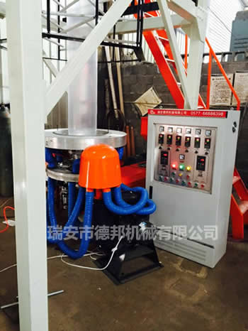 吹膜機(jī)結(jié)構(gòu) | 擠出機(jī),三通,摸頭,風(fēng)環(huán),下架,上牽引,收卷裝置 |
